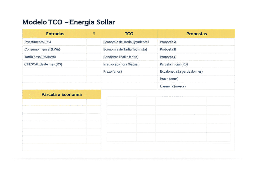 → Baixar planilha Modelo TCO – Energia Sollar