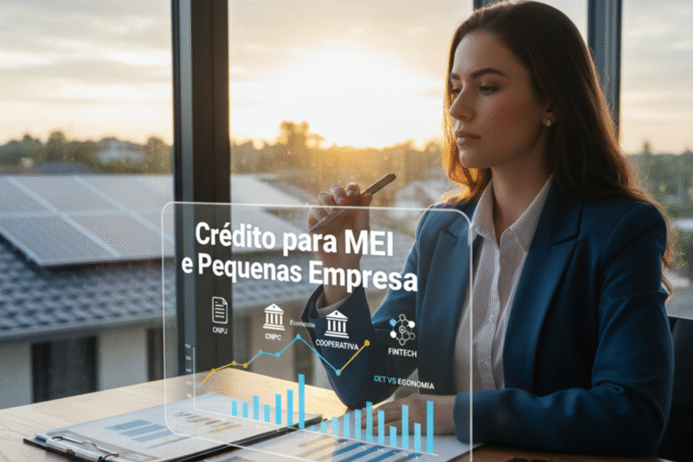 Nos bancos, você encontrará CDC empresarial (financia bens específicos, como kits fotovoltaicos, normalmente com garantia no próprio bem) e capital de giro direcionado (recurso carimbado para investimento produtivo, com comprovação de uso). A vantagem é a amplitude de produtos e a integração com serviços da conta PJ; a atenção fica em CET, garantias e prazos. Para entender a função do capital de giro e quando ele faz sentido, o Sebrae oferece materiais de base úteis para pequenos negócios. Sebrae